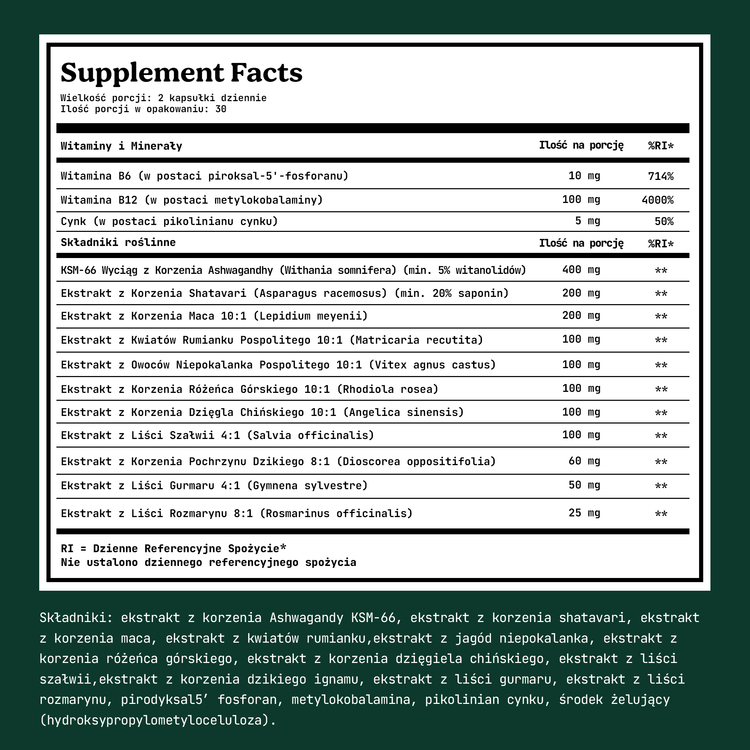 Wspomaga wytrzymałość, nastrój i zdrowie reprodukcyjne**